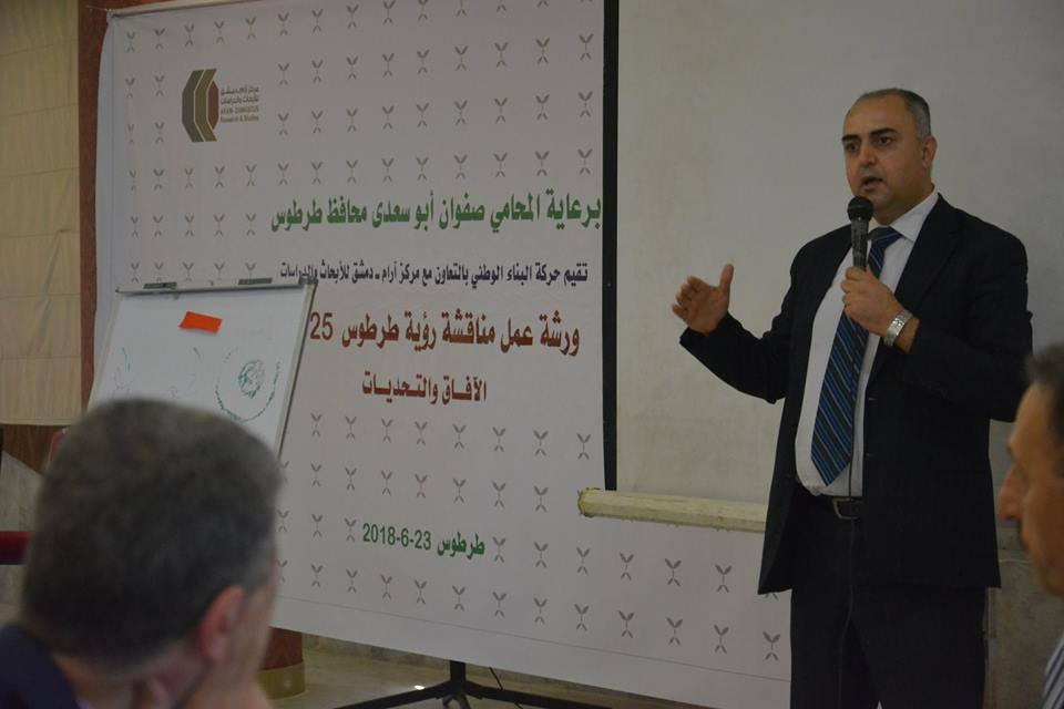 In a rare initiative to involve the local community’s executive authority in planning and thinking, under the sponsor of Tartous Governorate, the Nation Building Movement, in cooperation with the Aram Damascus Center for Research and Studies, in Tartous held a discussion session on Saturday, June 23, 2018, entitled (Discussing Tartous Vision 2025.. Prospects and Challenges).