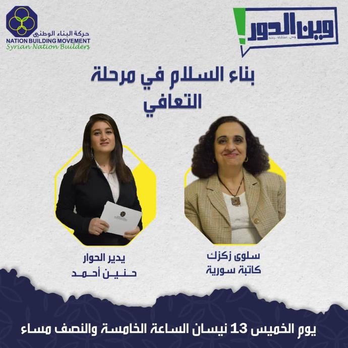 In the sixth session of the “Where is the Turn” series of recovery sessions with Salwa Zakzak - writer and short story writer, we talk about the procedures that the post-conflict phase must include in terms of reconciliation requirements, national dialogue, and the role of community structures in implementing these requirements within the pillar of building peace and human security.