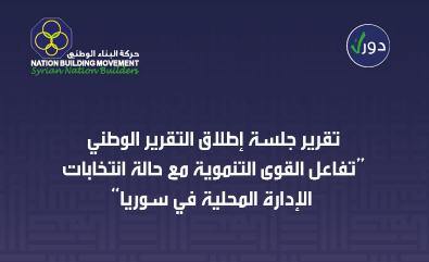 في اليوم الختامي لحملة دورك ضمن مشروع الإدارة المحلية، أقامت حركة البناء الوطني فعالية حضرها ناشطون وخبراء وصحفيون ومهتمون بالشأن العام، السبت 29 تشرين الأول 2022، وذلك لإطلاق تقريرها الوطني تحت عنوان "تفاعل القوى التنموية مع حالة انتخابات الإدارة المحلية في سوريا".