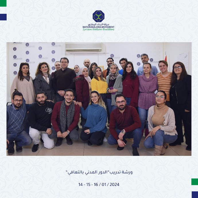 أقامت حركة البناء الوطني في مقرّها بدمشق ورشةً معرفيّةً تفاعليّةً استمرت ثلاثة أيامٍ، بالتعاون والشراكة مع مؤسسات لها مشاريع وتدخلات محلية (مَوج، حياة)، تحت عنوان:  "الدور المدني في التعافي ".
